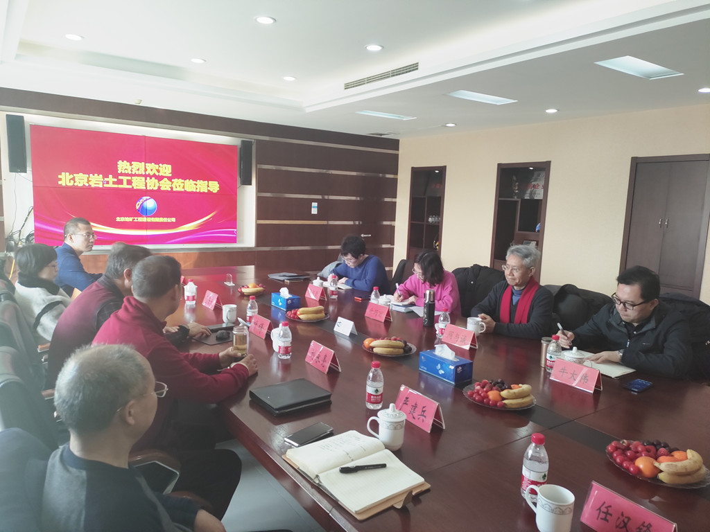 在向協(xié)會(huì)團(tuán)隊(duì)匯報(bào)與研討的會(huì)上,地礦公司總工程師葉鋒就公司的發(fā)展歷程、資質(zhì)榮譽(yù)、主營業(yè)務(wù)和技術(shù)創(chuàng)新進(jìn)行了詳細(xì)介紹。在談到技術(shù)創(chuàng)新時(shí),他強(qiáng)調(diào)北京地礦注重長期發(fā)展,在保持優(yōu)質(zhì)服務(wù)的基礎(chǔ)上積極創(chuàng)新,大力支持技術(shù)研發(fā)與創(chuàng)新應(yīng)用,多次取得科技進(jìn)步獎(jiǎng)。公司圍繞相關(guān)業(yè)務(wù)研發(fā)并取得“真空管井降水系統(tǒng)”、“洞樁咬合樁”、“水下錨索”、“勘察測量”等相關(guān)70余項(xiàng)發(fā)明、實(shí)用新型和軟件著作專利。他表示公司將技術(shù)升級作為發(fā)展的戰(zhàn)略之一,發(fā)揮企業(yè)實(shí)戰(zhàn)與科研機(jī)構(gòu)理論相結(jié)合的優(yōu)勢,推進(jìn)行業(yè)技術(shù)創(chuàng)新,現(xiàn)已與中國地質(zhì)大學(xué)、中科院等建立了產(chǎn)學(xué)研合作,公司同時(shí)是國家高新技術(shù)企業(yè)和中關(guān)村高新技術(shù)企業(yè)。