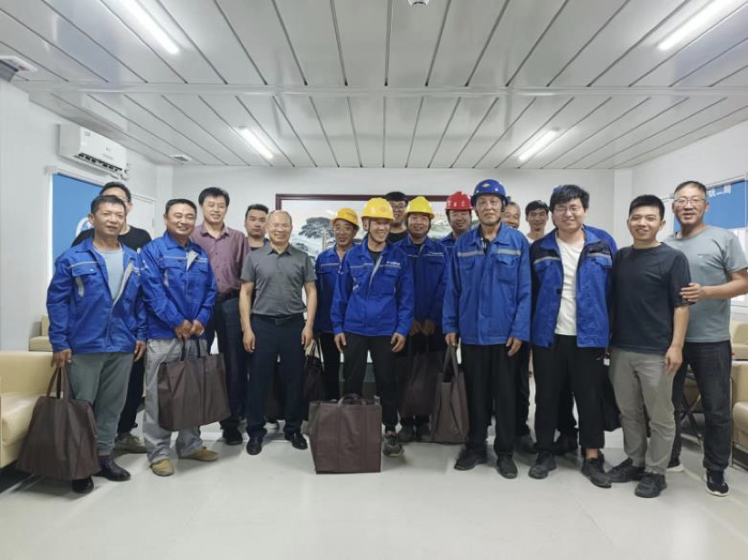 2023年十一和中秋雙節(jié)即將到來,為了深入貫徹公司以人為本的核心管理理念,感謝一線員工多年來的辛勤耕耘和默默付出,進一步做好基層生產(chǎn)工作人員的生活保障工作,充分體現(xiàn)公司對一線生產(chǎn)工作人員的尊重與關(guān)懷,公司為每一位一線生產(chǎn)工作人員準備了豐富的慰問禮包。由公司總經(jīng)理嚴建兵同志,常務(wù)副總經(jīng)理任漢鋒同志帶隊,對各個施工現(xiàn)場的一線生產(chǎn)工作人員進行了慰問。